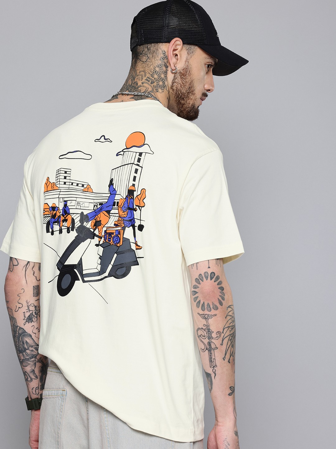 Printed Drop-Shoulder Sleeves Relaxed Fit Pure Cotton T-shirt